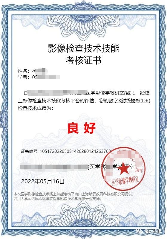 图2 DR检查技术技能考核证书