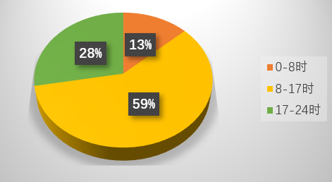 通过后台统计,截至6月14日,共有1038个注册用户,用户总登录23978人次(其中节假日登录使用9868 人次,占总登录次数的 41%),人均登录24次;其中8-17时(白天)登录量占比59%,17 -24时(夜晚)为28%,0-8时(凌晨)为13%,基本上24小时无间断使用(见图2);同时实验平台也获得了海外用户的关注,海外登陆次数163次。