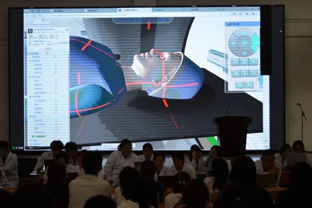 CT成像数字孪生系统,采用物理数字人作为扫描对象,以CT成像机理为基础,模拟CT成像过程,曝光参数调整和摆位与定位变化的影响,都会反映到图像的变化上;加上模拟真实操作场景以及真实设备操作界面,实现了CT的科学性与真实性模拟。该类型系统在提升实践能力、确保操作安全、降低教学成本、创新教学形式、重复性反复训练以及训练与考核的公平性上有重要意义,可广泛应用于课堂教学、课内测试、技能考核、规范化培训等方面。
