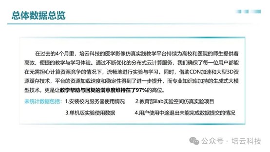 在数字化浪潮席卷教育领域的当下,培云科技始终致力于通过前沿技术推动医学影像教育的革新。继上一次对2024年9月1日至2025年1月14日的数据进行深入分析后,如今,我们带着2025年3月4日至2025年7月3日的最新数据成果与大家分享,一同见证医学影像仿真实践教学在数字化赋能下的蓬勃发展。